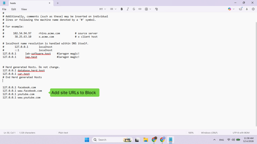 Below is a step-by-step tutorial to block a website in Windows (works for Chrome, Edge, Firefox, etc.) using the Hosts file. This method blocks the site on the entire computer.