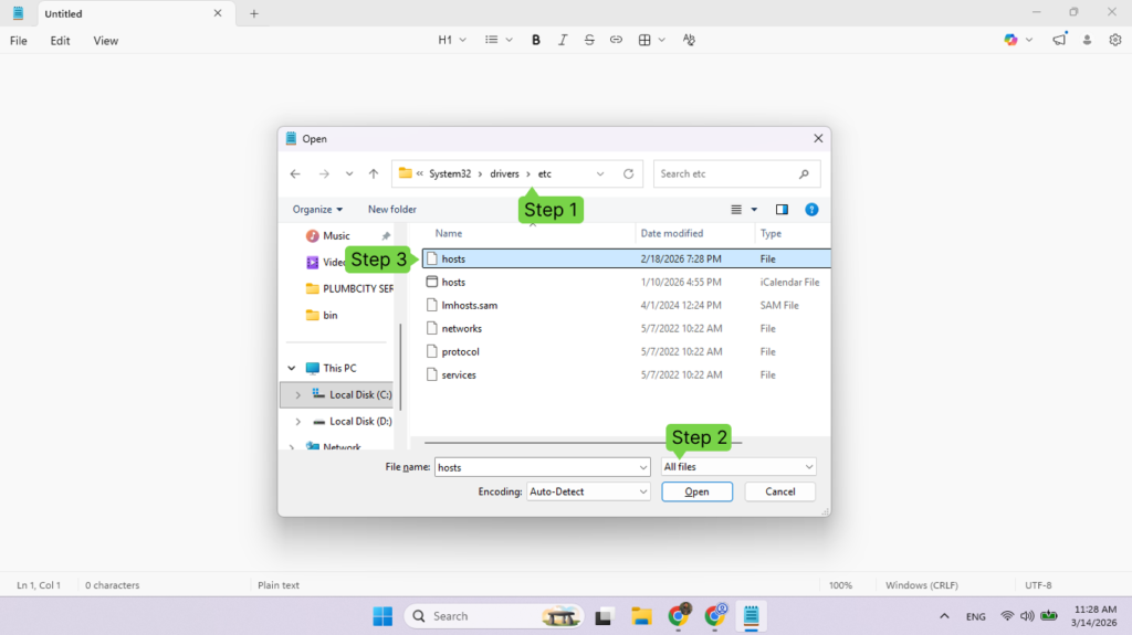 Step 2 — Open the Hosts File